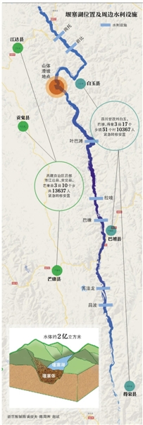 堰塞湖水体约2亿立方米