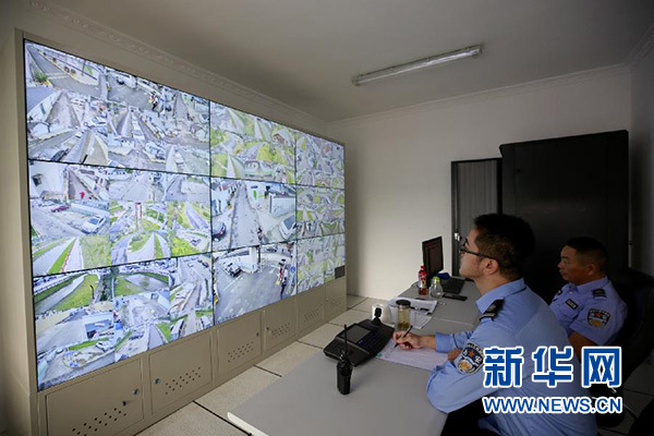 10月9日,工作人员在吴介巷美丽乡村监控室值班。新华社记者 张建松 摄