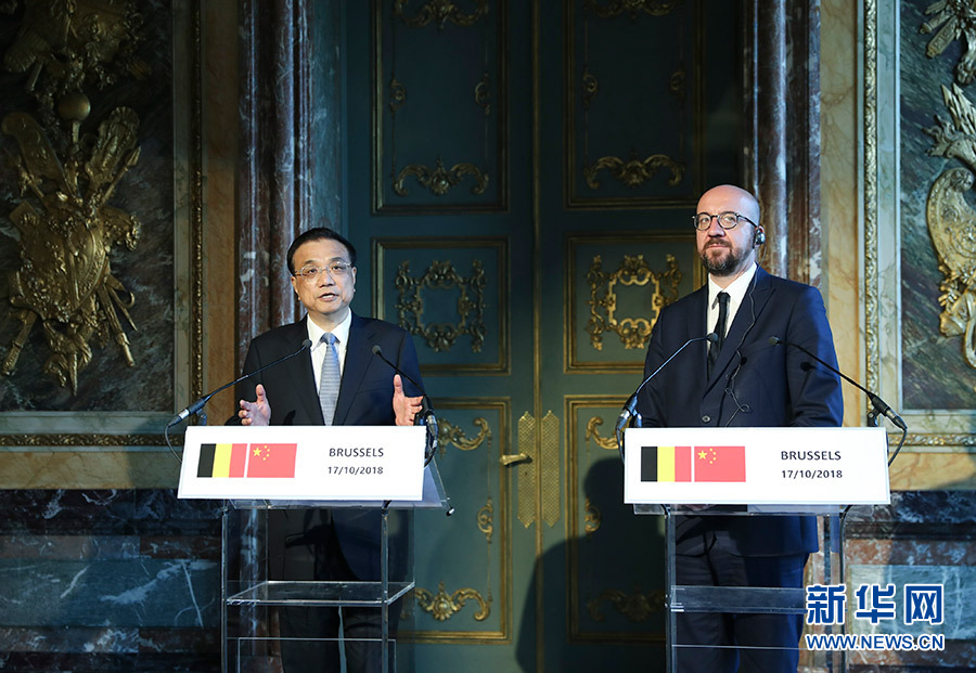 新华社布鲁塞尔10月17日电(记者郑明达 翟伟)当地时间10月17日上午,国务院总理李克强在布鲁塞尔埃格蒙宫与比利时首相米歇尔共同会见记者。