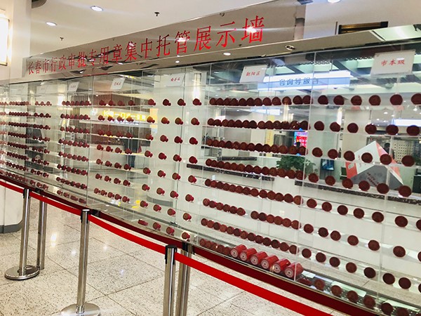 “印章集中托管也是我们不一样的地方。”孙金诠指着长春市行政审批专用章集中托管展示墙介绍道。