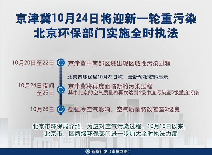 图表:京津冀10月24日将迎新一轮重污染 北京环保部门实施全时执法 新华社发 李栋 制图