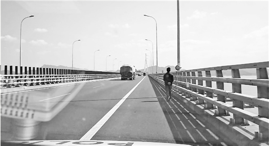下午1点不到,S19甬台温复线高速指挥象山港大桥监控中心的工作人员发现,在象山港大桥往象山方向的高速公路上有一个行人。
