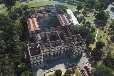 当地时间2018年9月3日,巴西里约热内卢,发生大火后的巴西国家博物馆。资料图片/视觉中国