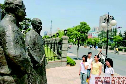 濠河边的张謇和梅兰芳塑像。 摄影:许丛军