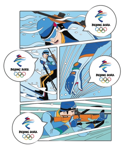 入围作品之一,含有漫画元素的冬奥会拼图徽章。