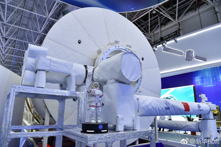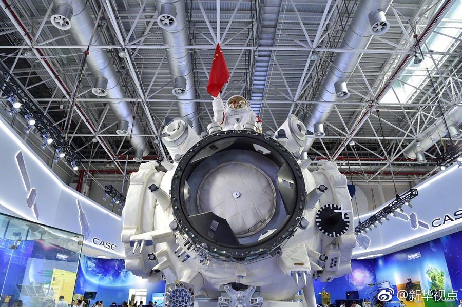 第12届珠海航展6日在珠海举办,由中国航天科技集团有限公司第五研究院研制的空间站核心舱首次对外公开展出。