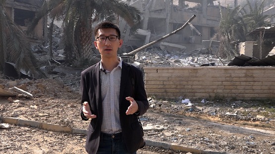 (郑一晗,新华社大马士革分社首席记者,曾任新华社对外部编辑、宁夏分社记者、开罗分社记者。2017年5月起常驻叙利亚,多次冒着炮弹袭击、地雷隐患等危险发回现场报道,10余篇作品获新华社部级优秀新闻作品,《“人在,这座城市就会活过来”——废墟中守望的阿勒颇老人》被评为新华社第五届“清新文风”佳作。2017年被评为新华社年度国际报道先进个人。在“美英法军事打击叙利亚”报道中的表现得到中宣部、中国记协表扬;2018年被评为新华社优秀共产党员。)