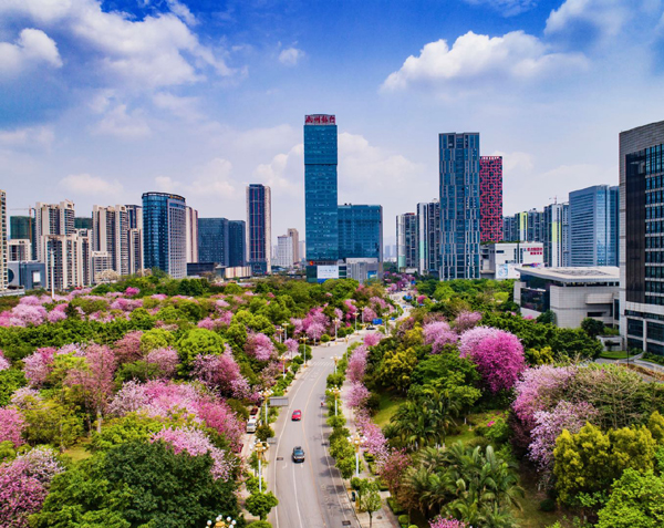 图为每年四月开满粉色紫荆花的柳州市区