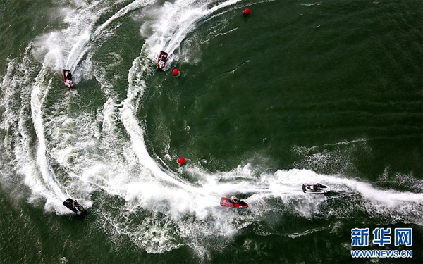 资料图:2017年9月28日,在广西柳州静兰水上运动基地,选手参加中国柳州国际水上摩托公开赛。新华社发(黎寒池 摄)