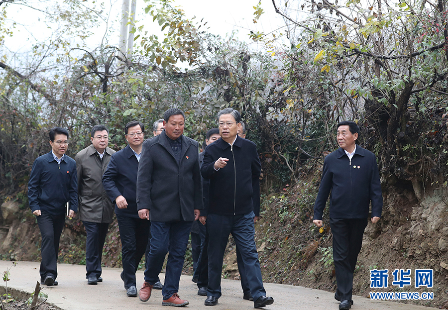 11月6日至9日,中共中央政治局常委、中央纪委书记赵乐际到河南省调研。这是11月7日,赵乐际在南阳市桐柏县吴湾村实地走访调研。 新华社记者丁林摄