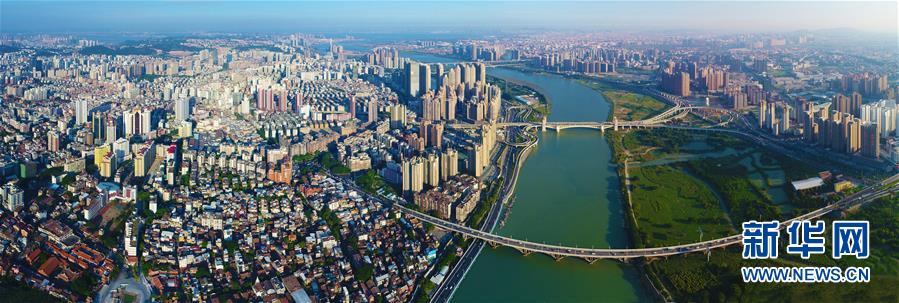 福建泉州母亲河晋江两岸(2017年8月15日无人机拍摄)。新华社发(陈英杰 摄)