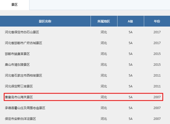 至此,山海关景区成为第一家被摘牌的5A级景区。