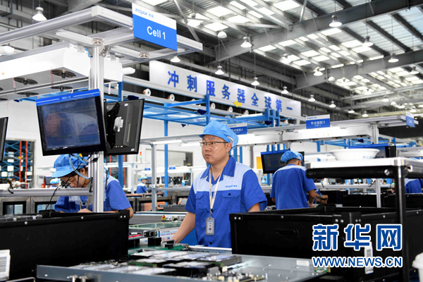 员工们在浪潮高端容错计算机产业基地生产服务器(6月14日摄)。新华社记者 朱峥摄