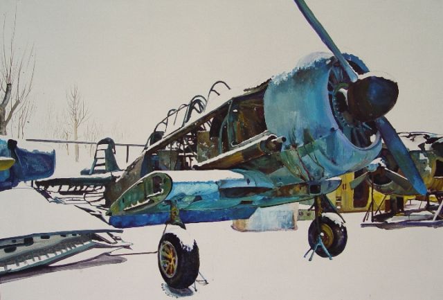 宫浩钦十分高产,他曾创作许多新型飞机与壮丽山河的画作,但在所有作品中,他最钟爱的却是一组“破飞机”。