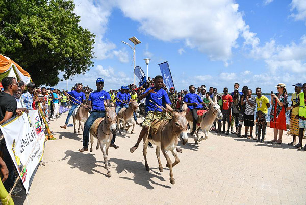 11月24日,在肯尼亚东部印度洋拉穆群岛上的拉穆古镇,当地居民在拉穆文化节上进行骑驴比赛。拉穆古镇为了保存斯瓦希里传统文化,至今当地没有汽车,骑驴是居民主要的交通方式。当日,一年一度的拉穆文化节在肯尼亚东部印度洋拉穆群岛上的拉穆古镇落下帷幕。据了解,拉穆文化节始于2001年,旨在展示和弘扬东部非洲斯瓦希里传统文化。今年的第18届文化节为期4天,主题是“探索拉穆”。拉穆是斯瓦希里文化发源地和保存最完好的地区之一,2001年被联合国教科文组织列入世界文化遗产名录。