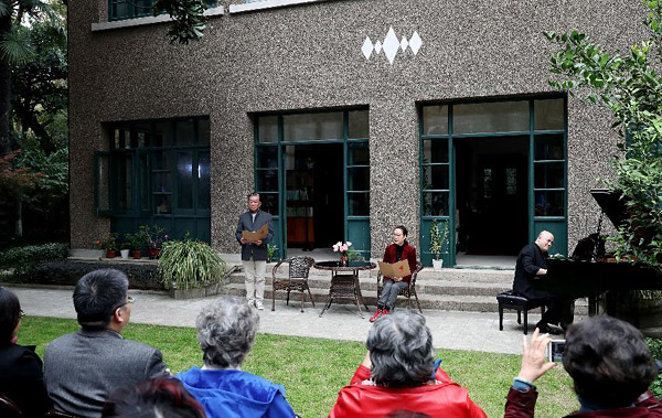 初冬的上海,巴金故居,细卵石墙面充当背景,院内草坪便是剧场,一架钢琴、一台古筝,一株高高玉兰树,11月25日,“巴金、萧珊作品朗读会”在这里举行。当天是巴金先生的生日,2018年也正逢巴老夫人萧珊诞辰100周年。来自上海电影制片厂演员剧团的老艺术家们为受邀前来的文学爱好者诵读了巴金及其夫人萧珊的文学作品和家书,共同感受文学的独特魅力。