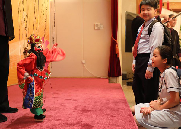 11月24日,小朋友近距离观看木偶。当日,福建泉州市木偶剧团的演员应邀在香港表演,让市民领略到提线木偶戏的独特魅力。