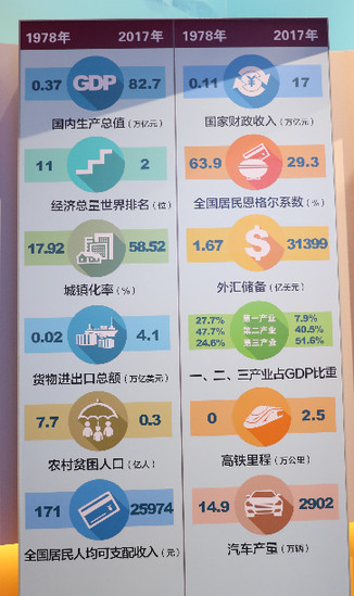 这是一张经济指标对比图,详细展示了1978年同2017年各项重要经济指标对比: