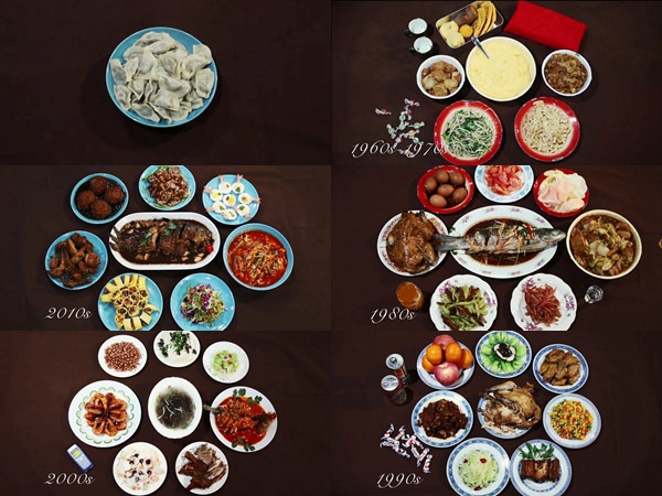 视频讲述的是改革开放40年来,中国人年夜饭的变迁。