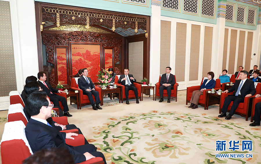 11月27日,国务院总理李克强在北京中南海紫光阁会见出席第二届中韩省长知事会议的双方代表。新华社记者 庞兴雷 摄