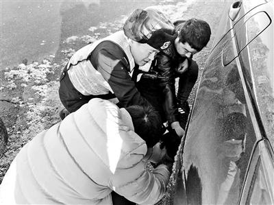 胡大鹏在执勤中帮助遇到困难的司机