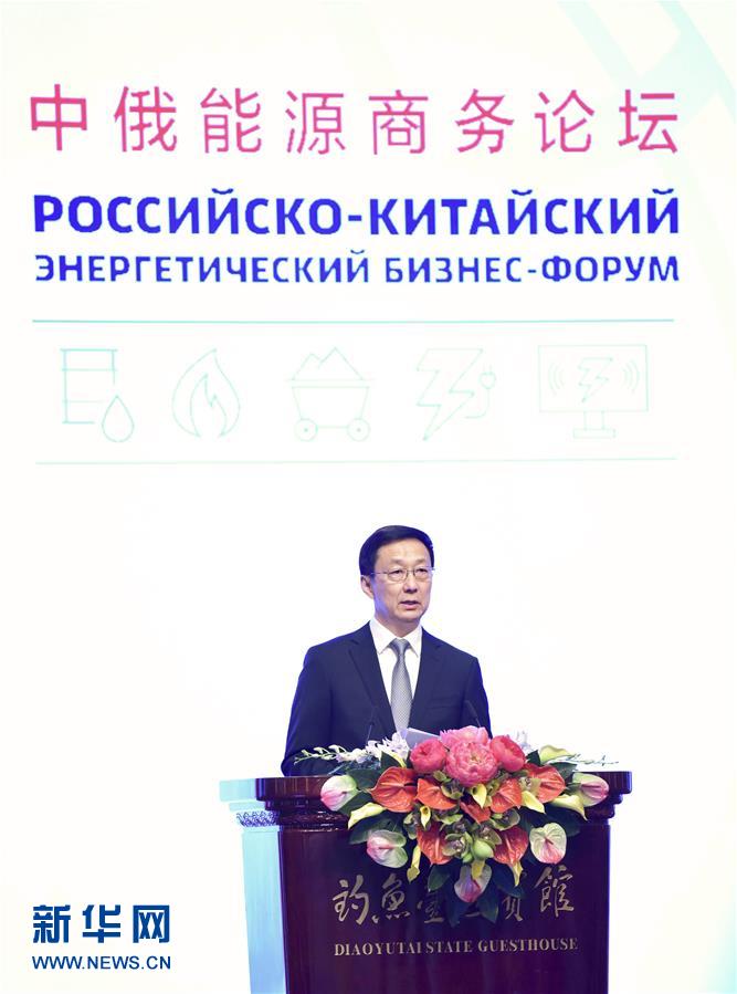 11月29日,中俄能源商务论坛在北京钓鱼台国宾馆开幕。中共中央政治局常委、国务院副总理韩正出席开幕式,宣读习近平主席贺信并致辞。 新华社记者 殷博古 摄