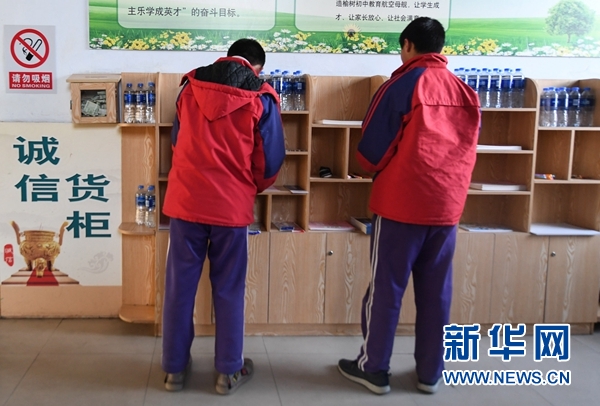 11月30日,在吉林省榆树市五棵树镇中学,学生们在“诚信货柜”选购商品。新华社记者 张楠摄