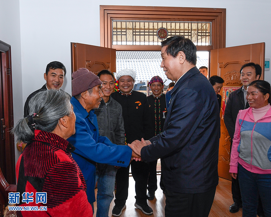 11月28日至12月1日,中共中央政治局常委、全国人大常委会委员长栗战书在云南就制定基本医疗卫生与健康促进法开展立法调研。这是11月30日,栗战书在云南省德宏傣族景颇族自治州瑞丽市户育乡户育村,走进村民家中唠家常、问收入、聊致富。 新华社记者 申宏 摄