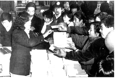 ▲闭架售书的时代,顾客选购《邓小平文选》