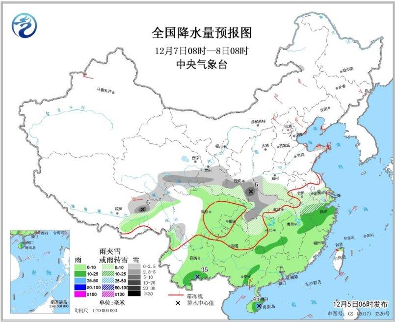 12月5日至8日,受冷暖空气共同影响,江淮、江南、华南等地多雨雪天气,降水量级以小到中雨(雪或雨夹雪)为主,部分地区中到大雨。