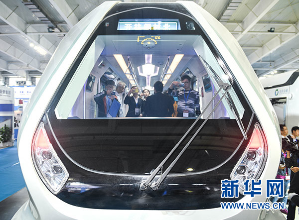 观众在长春轨道交通展上参观中车长春轨道客车股份有限公司发布的新一代地铁列车车体(2018年9月7日摄)。新华社记者 许畅 摄