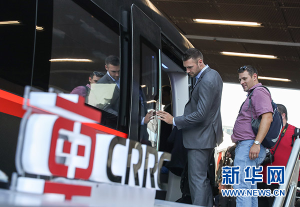 在德国首都柏林,人们参观中国中车的新一代碳纤维地铁列车(2018年9月18日摄)。新华社记者 单宇琦 摄