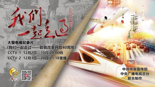 作为对40年来中国经济社会发展成就进行全景式呈现的大型电视纪录片,《我们一起走过——致敬改革开放40周年》展现了107个典型的改革故事,摄制组采访了183位改革的亲历者、参与者、见证者,还挖掘了大量历史素材,用40年来的时代歌曲、影视作品串起一段段改革岁月,旨在激起观众的共同记忆。