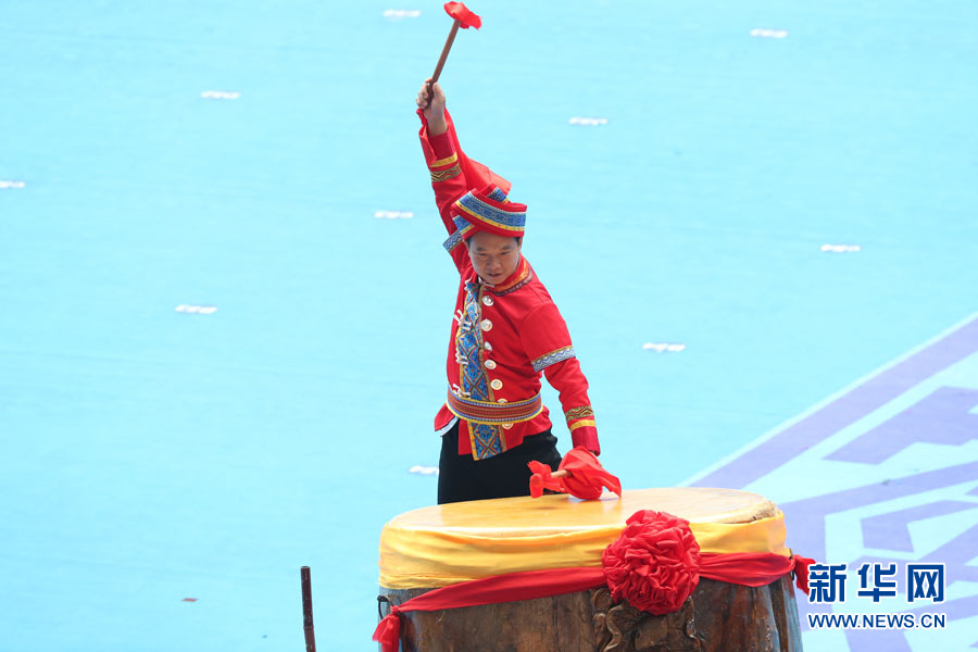 12月10日下午,广西壮族自治区成立60周年庆祝大会将在广西体育中心隆重举行。图为演员正在现场排练。新华网 陈杰 摄