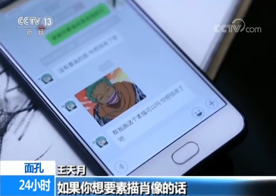 王天月:一般给我打钱,我都会说如果你想要素描肖像的话,把你的照片发给我就行,这个发的是动画片。