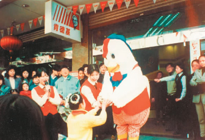 肯德基餐厅刚刚进入中国市场时受到民众围观的场景。在此后的几十年中,肯德基、麦当劳、必胜客等国外餐饮品牌迅速走进中国百姓的生活。(肯德基提供)