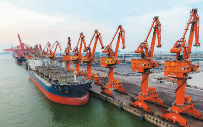 广西钦州保税港区码头,一艘货船正准备装卸货物。中国加入世贸组织以来,沿海地区物流业发展迅速。近年来,广西在海、陆、空立体式推进与东盟国家的互联互通,成为对外开放程度不断提高的一个生动案例。新华社记者 黄孝邦摄