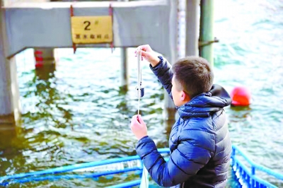 供水调度的正常开展,离不开水文人员的辛苦付出。早上8时许,怀柔水库的气温在零下9摄氏度左右,水库的水文取水点旁,京密引水管理处的水文人员李海春小心翼翼地顺着台阶向水面走去,由于气温太低,台阶栏杆两侧已结了厚厚的冰柱,台阶上也因为积水成冰而变得异常湿滑。来到水边,李海春掏出专业温度计,顺着绳子将它扔进水面。“为了测得更加准确,必须让温度计在里面至少待5分钟。”李海春说。专业的水文温度计有不锈钢外表,可以抵挡零下十几摄氏度的严寒。李海春虽然穿了羽绒服,但站在户外,尤其是水边,5分钟也是相当的难熬。