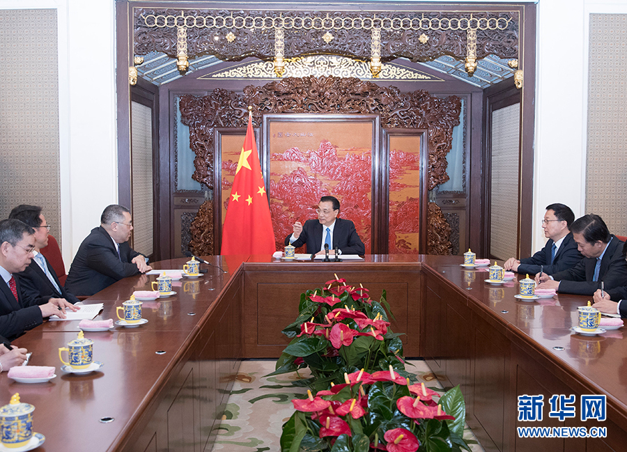 12月17日,国务院总理李克强在北京中南海紫光阁会见来京述职的澳门特别行政区行政长官崔世安。 新华社记者王晔摄