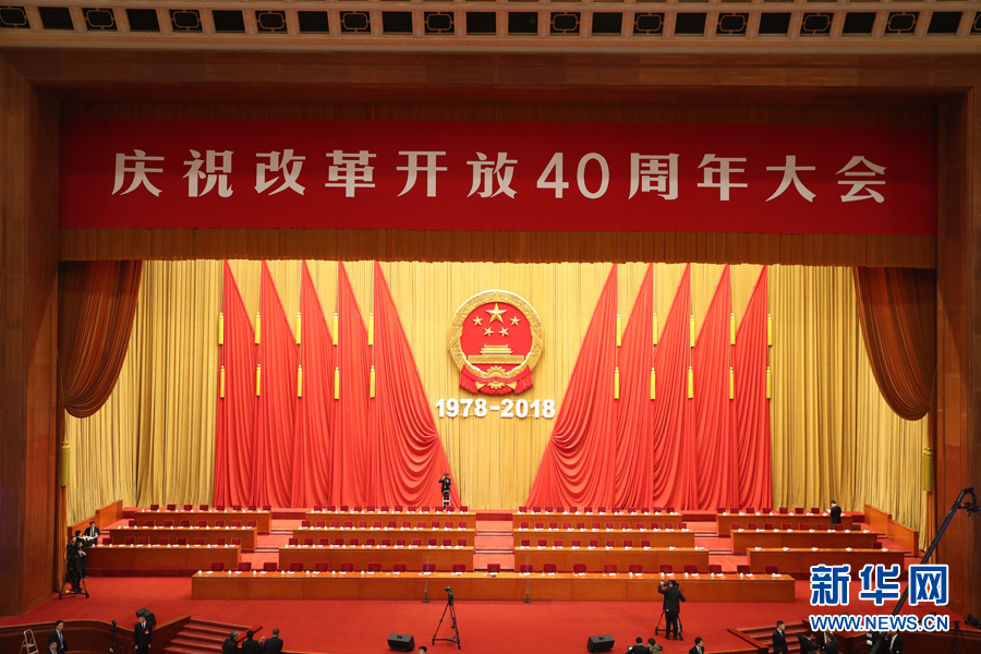 12月18日,庆祝改革开放40周年大会在北京人民大会堂隆重举行。图为人民大会堂大礼堂。新华网记者 郭小天 摄