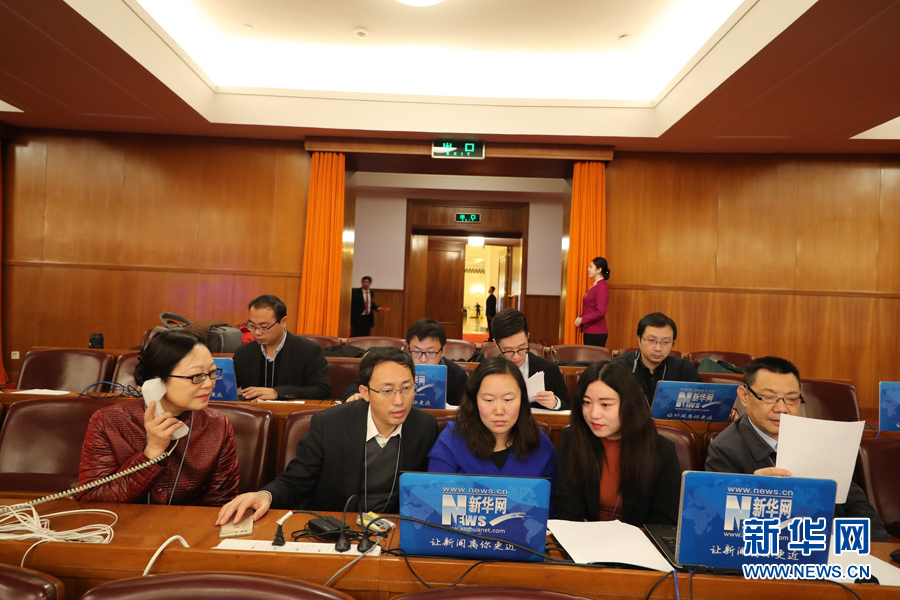 12月18日,庆祝改革开放40周年大会在北京人民大会堂隆重举行。图为新华网现场直播团队。新华网记者 郭小天 摄