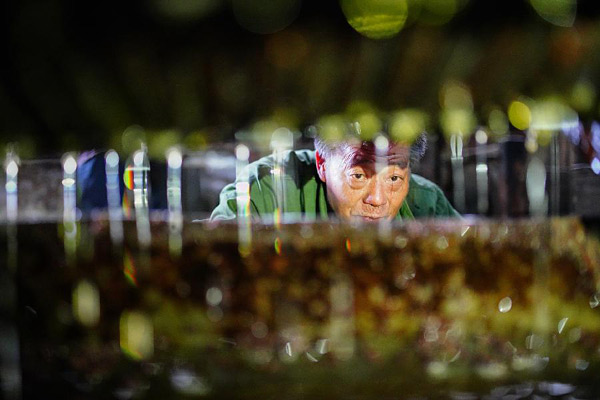 12月17日,在广西龙胜各族自治县泗水乡里茶村,榨油师傅在查看出油情况。入冬以来,位于泗水乡里茶村的油坊,开始沿用原始方法压榨茶油,整个制作过程包括烘干茶籽、碾制茶粉、制作茶饼、压榨、过滤沉淀等工序。尽管这种传统榨油工艺已逐渐被现代工艺所替代,但由于手工榨出的茶油质量好、保质期长,深受市场青睐。