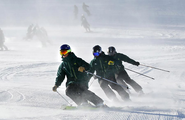 12月17日,滑雪爱好者在开幕式上进行滑雪表演。当日,以“欢天喜地享民俗,冰雪激情迎冬奥”为主题的第18届中国崇礼国际滑雪节在河北省张家口市崇礼区太舞滑雪场开幕。本届滑雪节将持续举办至明年3月,在此期间,国际雪联世界杯、高山滑雪积分赛、单双板自由追逐滑雪赛等一批高水平赛事将在崇礼的众多雪场举行。