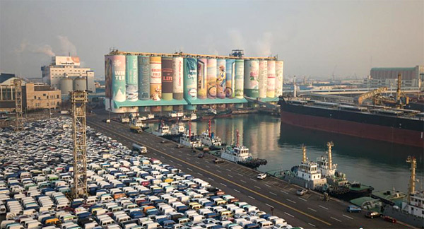 12月19日,韩国仁川港一座粮仓外壁上展出巨幅壁画,该壁画已载入吉尼斯纪录。据报道,仁川市政府委托22名绘画艺术家在今年1月启动该项目,共耗资48.7万美元。