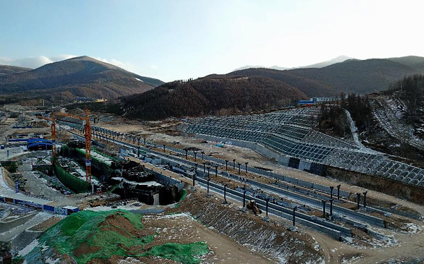 北京冬奥会张家口赛区76个项目正在按照既定时间节点稳步推进,目前开工了65个,明年计划开工11个项目,部分项目进度获得国际官员专家的高度评价。这是12月19日拍摄的2022年冬奥会张家口赛区配套项目——京张高铁支线崇礼铁路太子城站建设工地。