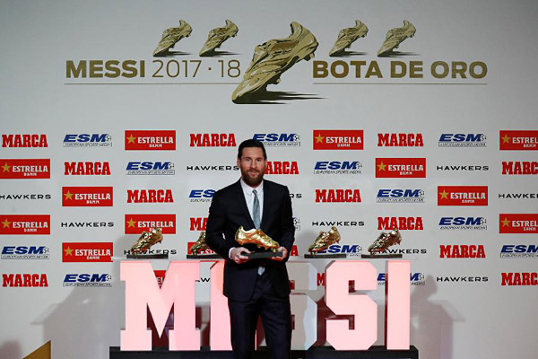 梅西五夺欧洲金靴奖