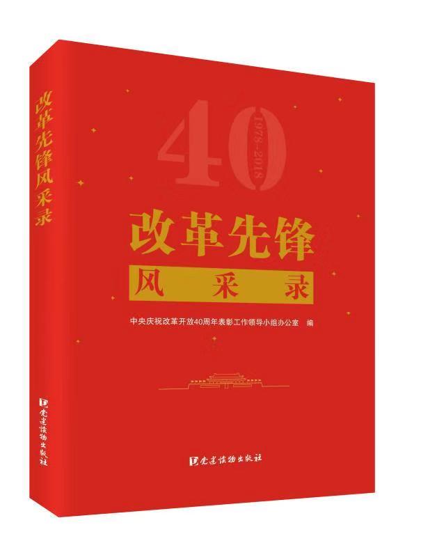 为帮助广大党员干部群众学习改革开放100名先锋人物事迹,中央庆祝改革开放40周年表彰工作领导小组组织编写了《改革先锋风采录》一书,近日由党建读物出版社出版发行。