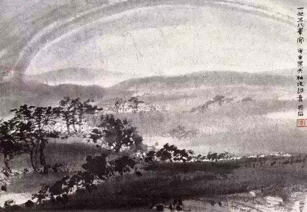 赤橙黄绿青蓝紫,谁持彩练当空舞?雨后复斜阳,关山阵阵苍。