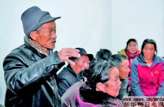 “我也要说两句。”听了谈话内容,这位叫申永贵的老人站了起来。“这一二年,家家院坝修得好,生活变化大,都是习总书记关心咱们老百姓。我已经79岁喽,生活好了,就想着多活一年半载,能看着我们村变得更好。”老人的话引来一片掌声。