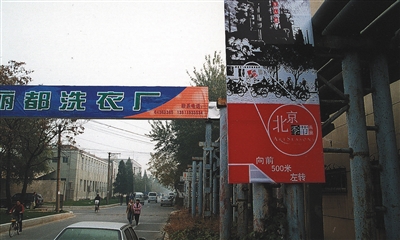 2004年8月15日,北京,798工厂。管道林立的厂房内竖满了招牌。图/视觉中国